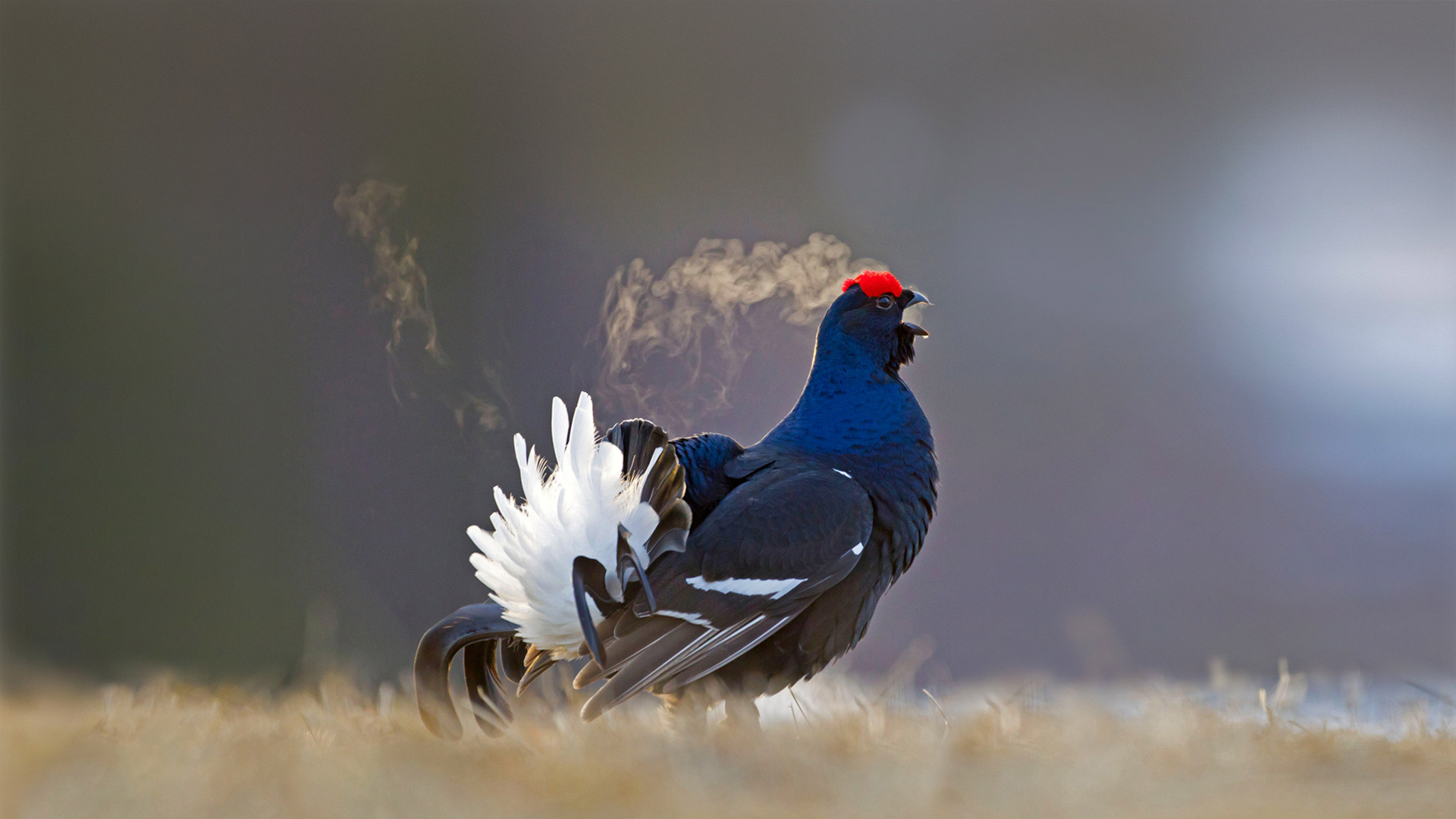 Black grouse male calling at a lek site in Kuusamo, 芬兰 (© Oliver Smart/Alamy)