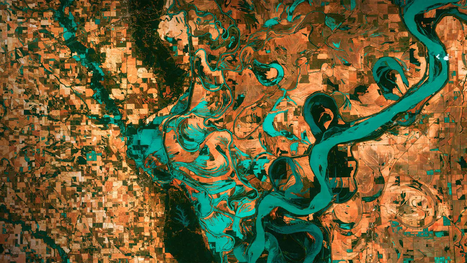 Mississippi River on the border between Arkansas and Mississippi (© NASA)