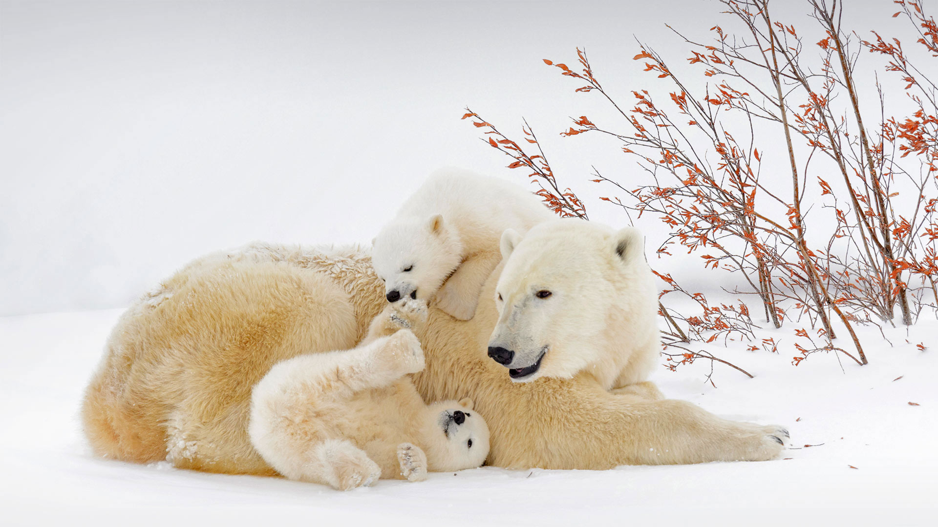 Polar bear mother with cubs in Wapusk National Park, 马尼托巴, 加拿大 (© Andre Gilden/Minden Pictures)